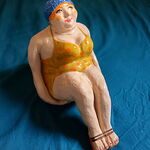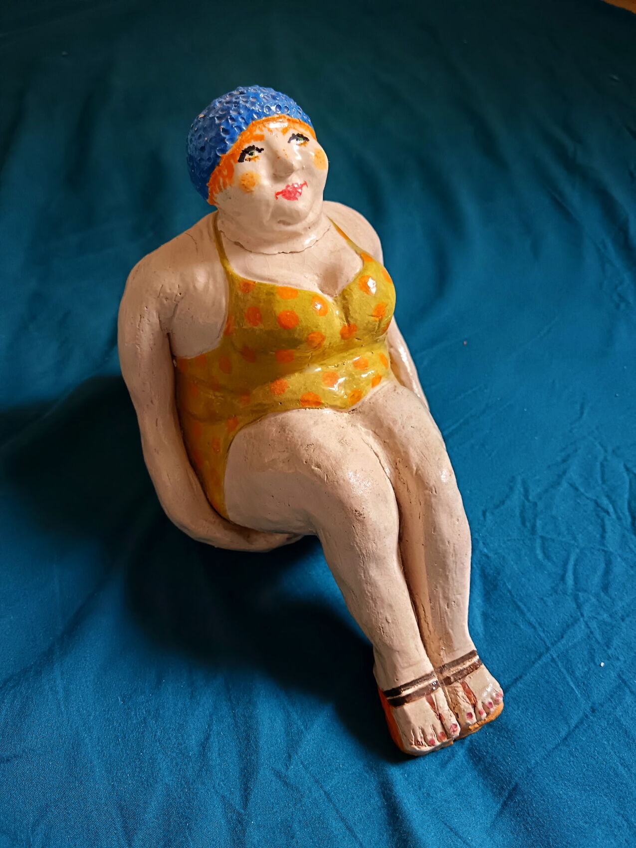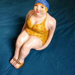 Jolie baigneuse en terre cuite, peinte à la main et vernis. Oeuvre unique